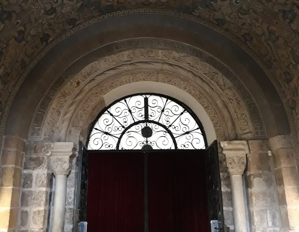 Już w kruchcie świątyni napotykamy piękne polichromie na suficie oraz, choć niekompletny, to jednak wciąż budzący zachwyt romański portal z lat 1148-56. Został wykonany najprawdopodobniej we Włoszech. Jak zauważają znawcy historii sztuki, jest jednym z najstarszych w Polsce i otwierającym historię rzeźby figuralnej w naszym kraju. Portal jest ujęty w dwie pary kolumn podtrzymujących cztery łuki (tzw. archimolty) z ozdobnymi wzorami. W portalu zachowały się dekoracje głowic kolumn – jedna przedstawia herosa walczącego z dwoma smokami, a druga maskę z motywem roślinnym. Niestety, upływ czasu nie był tak łaskawy dla tympanonu, czyli górnej części portalu. Pierwotnie składał się z rzędu 13 figur przedstawiających apostołów i Madonnę. Do dzisiaj zachowały się jedynie dwie figury i dwa mniejsze ozdobne fragmenty portalu. Wyeksponowano je na ścianach bocznych przy wejściu do bazyliki.