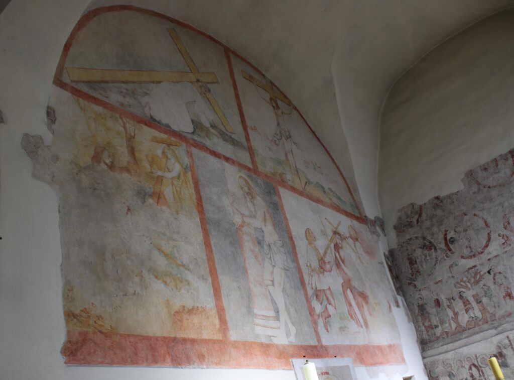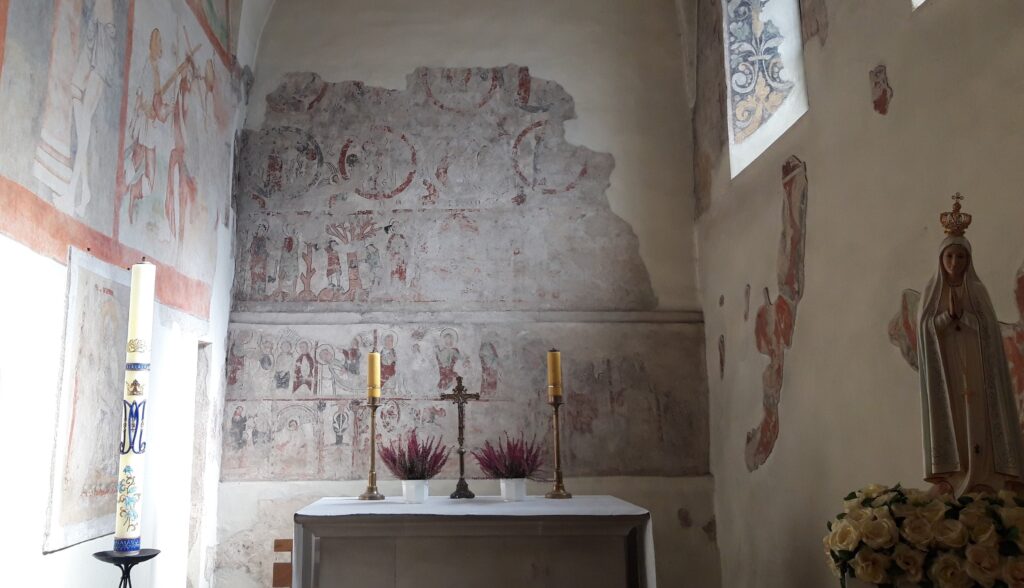 W nawie południowej znajdziemy odsłoniętą w roku 1970 kolumnę romańską. Idąc dalej nawą, dojdziemy do kaplicy z freskami gotyckimi oraz romańskimi. Te ostatnie, trzynastowieczne o tematyce biblijnej odkryto w roku 1951. Uważa się je za największy i najlepiej zachowany zespół malowideł romańskich w Polsce. Co ciekawe, pozostawały przykryte pod 12 (!) warstwami fresków powstających w kolejnych wiekach. Podczas prac konserwatorskich okazało się, że jedną z warstw stanowiły freski gotyckie z 1425 r. przedstawiające Matkę Boską z Chrystusem. Przeniesiono je na północną ścianę kaplicy. Z kolei na ścianie okiennej możemy podziwiać freski romańskie z XII w. – pierwotnie znajdowały się nad łukiem tęczowym nawy głównej.