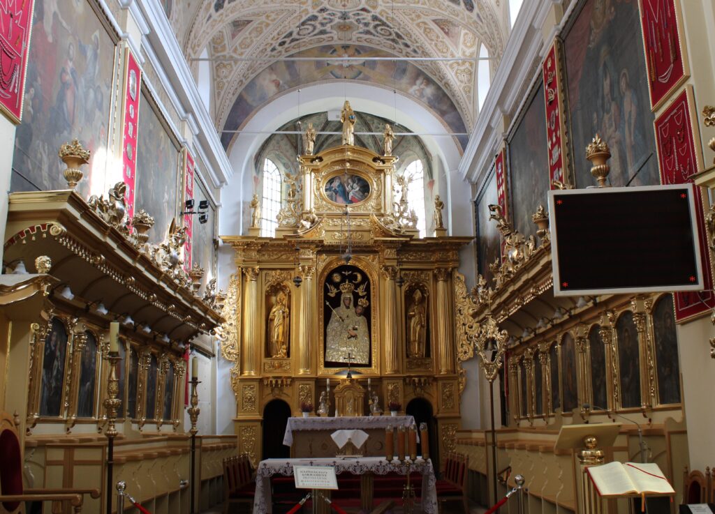 W nawie głównej uwagę zwraca belka tęczowa z XVII w. W prezbiterium możemy podziwiać drewniany, pozłacany i bogato zdobiony ołtarz z roku 1630. W centralnej części ołtarza znajduje się obraz Matki Boskiej Czerwińskiej, uznany w roku 1648 za cudowny. Został namalowany przez Łukasza z Łowicza w 1612 r. na zlecenie kanoników regularnych, ówczesnych właścicieli opactwa. Pierwowzorem obrazu był wizerunek Matki Bożej Śnieżnej z rzymskiej bazyliki Santa Maria Maggiore. Warto również zwrócić uwagę na stalle (tj. ozdobne ławy dla duchowieństwa usytuowane pod ścianami prezbiterium) z XVII i XVIII w. z obrazami przedstawiającymi świętych z zakonu kanoników regularnych.