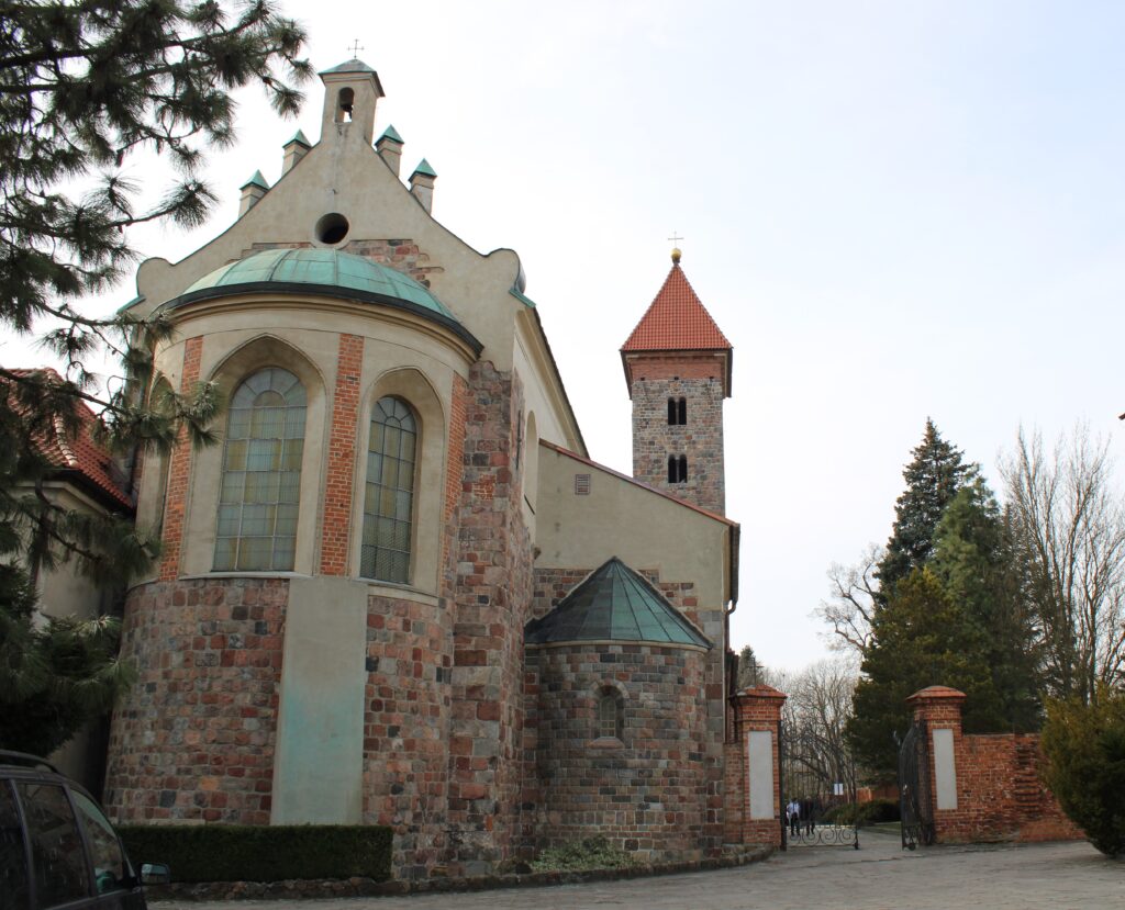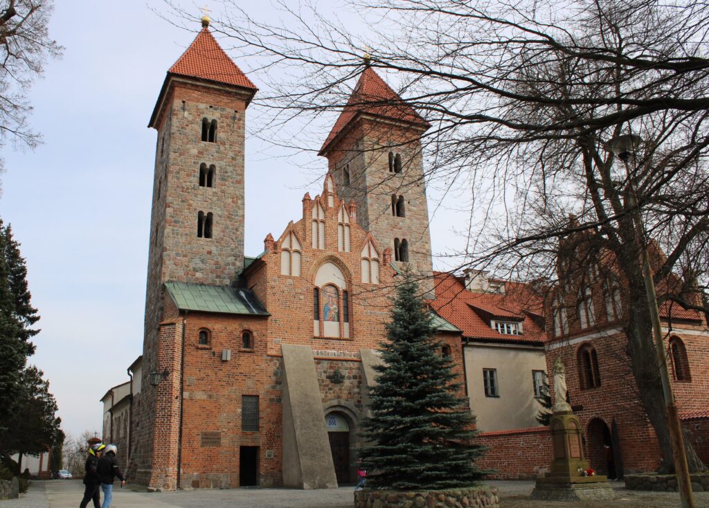 Centralną częścią kompleksu klasztornego jest romański kościół Zwiastowania Najświętszej Marii Panny. Bazylika została wzniesiona w pierwszej połowie XII w. I choć na przestrzeni wieków świątynia przeszła niejedną przebudowę, wciąż zachowała swój romański charakter. Zarówno sama bryła budowli, jak i jej układ przestrzenny tylko nieznacznie różnią się od pierwotnego zarysu. Kościół został zbudowany z ciosów z polnego granitu, jednak gdzieniegdzie trafiają się również romańskie cegły. W XVII w. obiekt zyskał fasadę, czyli reprezentacyjną część elewacji, a wiek później dwie przypory (skarpy) po obu stronach wejścia. Nad świątynią górują dwie wieże kościelne o wysokości 33 m. Zbudowano je z bloków czerwonego granitu. Każda z wież ma biforia – arkadowe okienka podzielone kolumienką na dwie części.