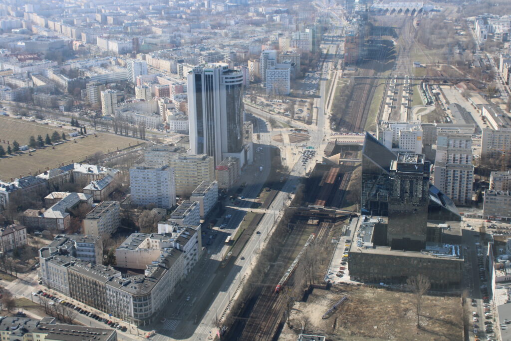 Panorama obejmuje również nowoczesne wieżowce Woli, okolice stacji kolejowej Warszawa Główna oraz dalsze dzielnice stolicy. Przy dobrej pogodzie wzrok sięga aż po Żerań, gdzie wyróżnia się charakterystyczny biało-czerwony komin elektrociepłowni. Z góry widać także teren Filtrów Warszawskich czy budynek Archiwum Akt Nowych – miejsca, które na co dzień łatwo przeoczyć, a z tej wysokości tworzą ciekawy element miejskiej układanki.